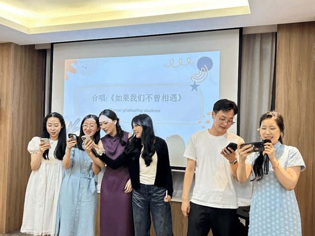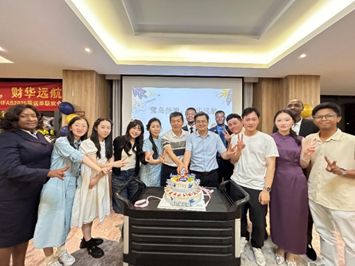 After the performance segment, Zhou Minqin, Deputy Party Secretary of the of the School of Management, and Hu Jinshuai, Deputy Dean of IFAS, together cut the graduation cake. Finally, all the teachers and students gathered for a group photo, preserving the memory of this unforgettable evening.