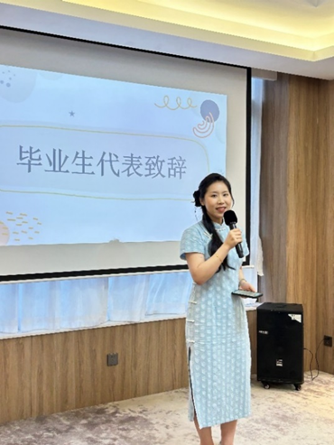 Graduate representative Situ Haiying reminisced about her wonderful time at IFAS, expressing gratitude for frendships and mentorship. She stated that the graduates would continue to pay attention to the development of their alma mater, take knowledge as arrows, faith as shields, and repay the school's care with a pure heart.
