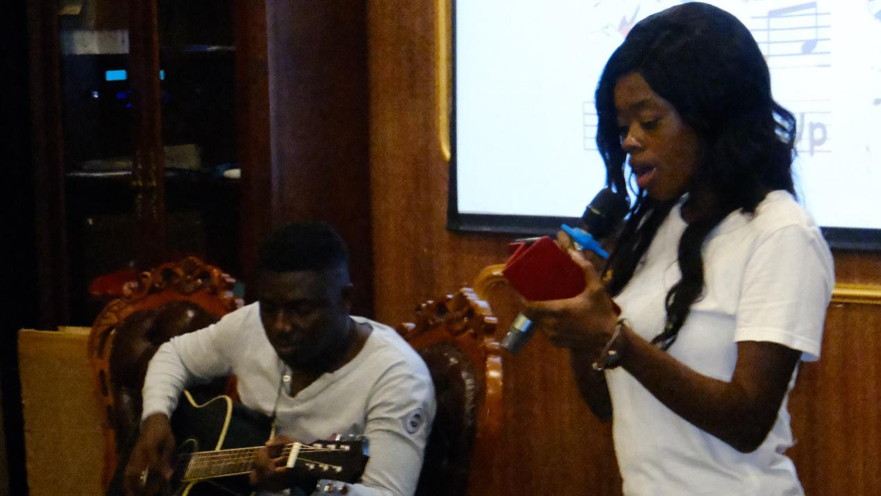 Immediately afterwards, the party ushered in a relaxed and cheerful show performance. First, the international students brought the guitar to sing, the melodious singing accompanied by the soft and crisp string music, everyone was full of praise. Then Anqi Chen and Yinglong Yang expressed their congratulations on the graduation of the seniors with a song "Don't Say Goodbye", and a faint sadness of parting came to their hearts. But the following dance "The alliance of lovelorn" completely ignited the audience. The playful dance and lively music showed youthful demeanor and showed a positive attitude towards the future. As the party reached its climax, Rongbi Zhou brought a violin to play "Always with me". Afterwards, Liu Ke sang a song "Distant Songs" to bless the graduates. In the end, graduates Li Jing and Yuqing Hao recalled the love of the third grade classmates with beautiful dances.