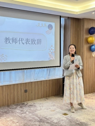 Figure 7: Scene of Hou Fangfang, Teacher Representative, Delivering a Speech