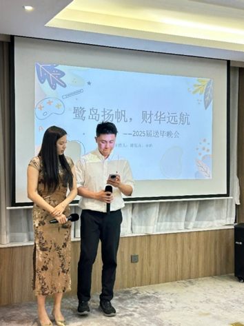 On the evening of May 26, 2025, the Student Union of the Institute for Financial & Accounting Studies hosted the 2025 Graduation Gala. The event was officially attended by Zhou Minqin, Deputy Party Secretary of the School of Management; Hu Jinshuai, Vice Dean of the Institute for Financial & Accounting Studies; Liu Qian, Communist Youth League Secretary  of the School of Management; Chen Yimei, Counselor of the School of Management; and teachers from the Institute for Financial & Accounting, namely Li Maoliang, Li Shan, Hou Fangfang, Wu Zhiting, Li Wanyun, Yu Zhige, Che Yixing, Jin Yige, Ye Ling, and Zhou Zixuan.