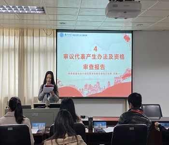 会议进入第六项,审议财会院2020年研究生代表会议选举办法,并全票通过监票人和计票人名单。