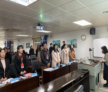 会议进入第一项,全体师生起立奏唱国歌。财会院第三届研究生代表会议正式开幕。