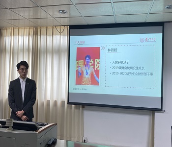 会议进入第三项,由厦门大学研究生会主席团执行主席郭婧同学致辞。郭同学首先对财会院研究生会已有的工作成果表示高度认可与赞许,接着宣扬党的十九届五中全会精神,鼓舞在座的同学们努力学习科学文化知识,为全面建设社会主义现代化国家贡献自己的力量。