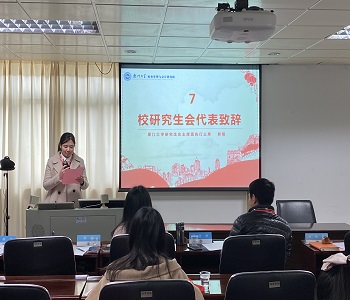 (厦门大学研究生会主席团执行主席郭婧同学致辞)