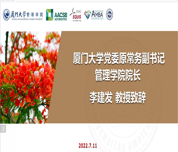 7月11日上午,夏令营正式开营。开场视频生动形象带营员们了解厦大校史、整体学科动态和科研成果。随后厦门大学党委原常务副书记管理学院院长李建发致辞,对营员们的到来表示热烈欢迎,并阐述了厦门大学管理学院和财务管理与会计研究院悠久的历史沿革和学科建设成果以及校园生活,向同学发出诚挚邀约,期待凤凰花开时与营员们相约美丽的厦园。