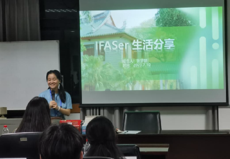 接下来是财会院研究生会宣传部部长张语涵同学给营员们进行学习方面的经验分享。张语涵同学首先介绍了我院所归属的财务管理、会计学两个专业的学科实力,两专业分别位列全国第二(A+)、第四(A+),名列前茅;紧接着,张语涵同学介绍了厦大的学习资源,并根据财会院的壁画对财会院的学生所要经历的“财会院之旅”进行了详细解读;最后,张语涵同学介绍了财会院的课程具体安排以及毕业生就业去向等,为营员们全面地展示了IFASer们是如何学在厦大、学在财会院的。