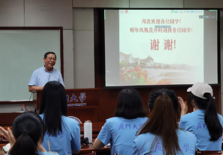 接下来,厦门大学党委原常务副书记、管理学院原院长李建发教授为营员们开展了“研究高深学问,阐扬管理文化”主题讲座。李建发教授从理念、目标、任务、校训、投入等方面对厦门大学进行了阐述,让营员们深入体会和认识厦大的深厚文化底蕴。讲座最后,李建发教授再次对各位营员们的到来表示热烈欢迎,并希望明年凤凰花开之际可以再次迎接营员们。