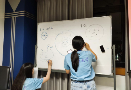 在学姐们进行了精彩的分享之后,破冰交流会进入了游戏环节。游戏环节包括三个游戏,分别为“创意介绍”、“你划我猜”和“Emoji猜词”,现场营员一共分为五组进行游戏。