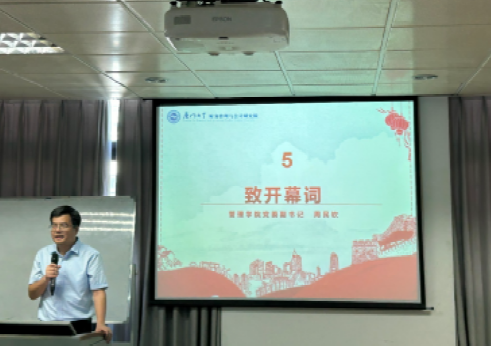 图3:管理学院党委副书记周民钦致开幕词