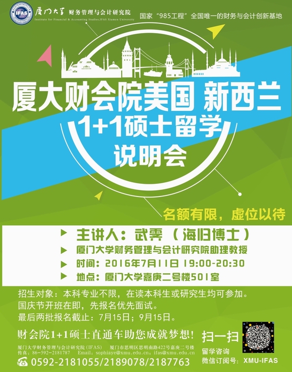 【开讲啦】厦大财会院1+1硕士直通车项目2016秋季班招生说明会(厦大本部专场)
