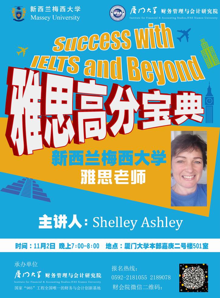 主讲人:Shelley Ashley (新西兰梅西大学外派资深雅思老师)