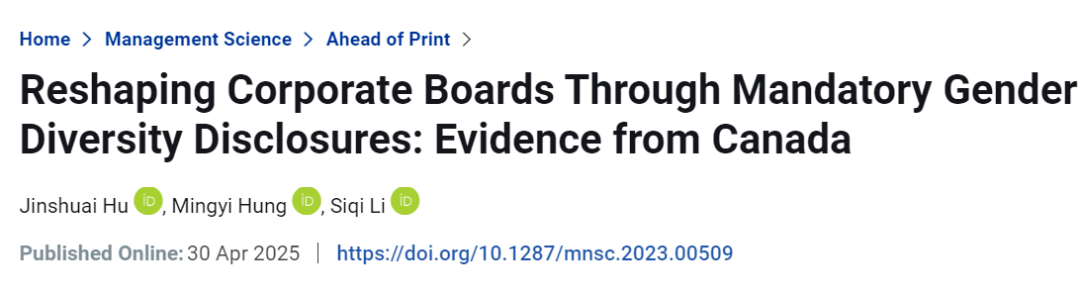 我院胡金帅教授论文在管理学顶刊Management Science发表