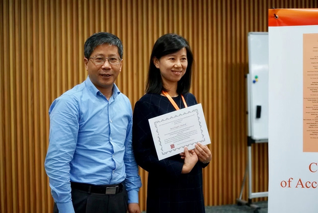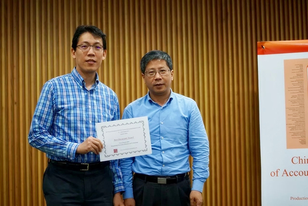 最后,刘峰教授代表厦大会计学科致以简短的结束语,并宣布了本次年会最佳论文奖和最佳评论人奖的获得者。本次会议的最佳论文奖最终授予来自香港恒生管理大学的Yiwei Yao(报告论文:“Does independent director’s monitoring affect reputation? Evidence from stock and labor markets”);最佳评论人奖最终授予来自香港科技大学的Charles Hsu教授(点评论文:“Auditor pricing of inventory in China:a puzzle or not? ”Xi Wu, Xueqin Wang, Yulong Yang)。CJAR杂志主编、中山大学魏明海教授为获奖者颁奖,并感谢各界多年来对CJAR一如既往的支持,盛情邀请国内外会计学者和博士生参加2018年在广州中山大学举行的CJAR创刊十周年学术年会。