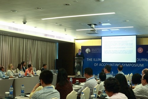 本届研讨会由美国伊利诺伊大学厄巴纳-香槟校区(University of IllinoisUrbana-Champaign,简称UIUC)的齐默尔曼会计国际教育与研究中心(Vernon K. Zimmerman Centerfor International Education and Research in Accounting)主办,由厦门大学财务管理与会计研究院(以下简称财会院)、厦门大学会计发展研究中心、厦门大学管理学院会计系联合承办。研讨会聚集了来自美国、英国、日本、韩国、澳大利亚、新西兰、以色列、意大利、荷兰和中国台湾、香港、内地等国家和地区会计研究领域近70位专家学者,其中包括来自美国伊利诺伊大学、杜兰大学、澳大利亚悉尼大学、日本一桥大学、香港理工大学、台湾大学、清华大学、南京大学、厦门大学等许多知名学府的资深教授,特别是邀请到《会计、审计与金融期刊》(The Journal of Accounting,Auditing and Finance)等五个会计国际期刊的主编与会。