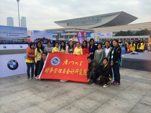 芙蓉湖边,跨年舞会的热闹还未散去,2014年的第二天,厦门国际马拉松赛便鸣枪开跑,全城出动,热情高涨。在这场共有来自45个国家和地区的77,080名运动员报名参赛的国际赛事中,厦门大学财务管理与会计研究院积极倡导体育精神,高度重视此项国际体育赛事。在班主任武霁老师的倡议下,全院硕士生、博士生组成马拉松小组,积极参赛,还鼓励未参赛同学们组成啦啦队,为参赛同学现场加油助威。