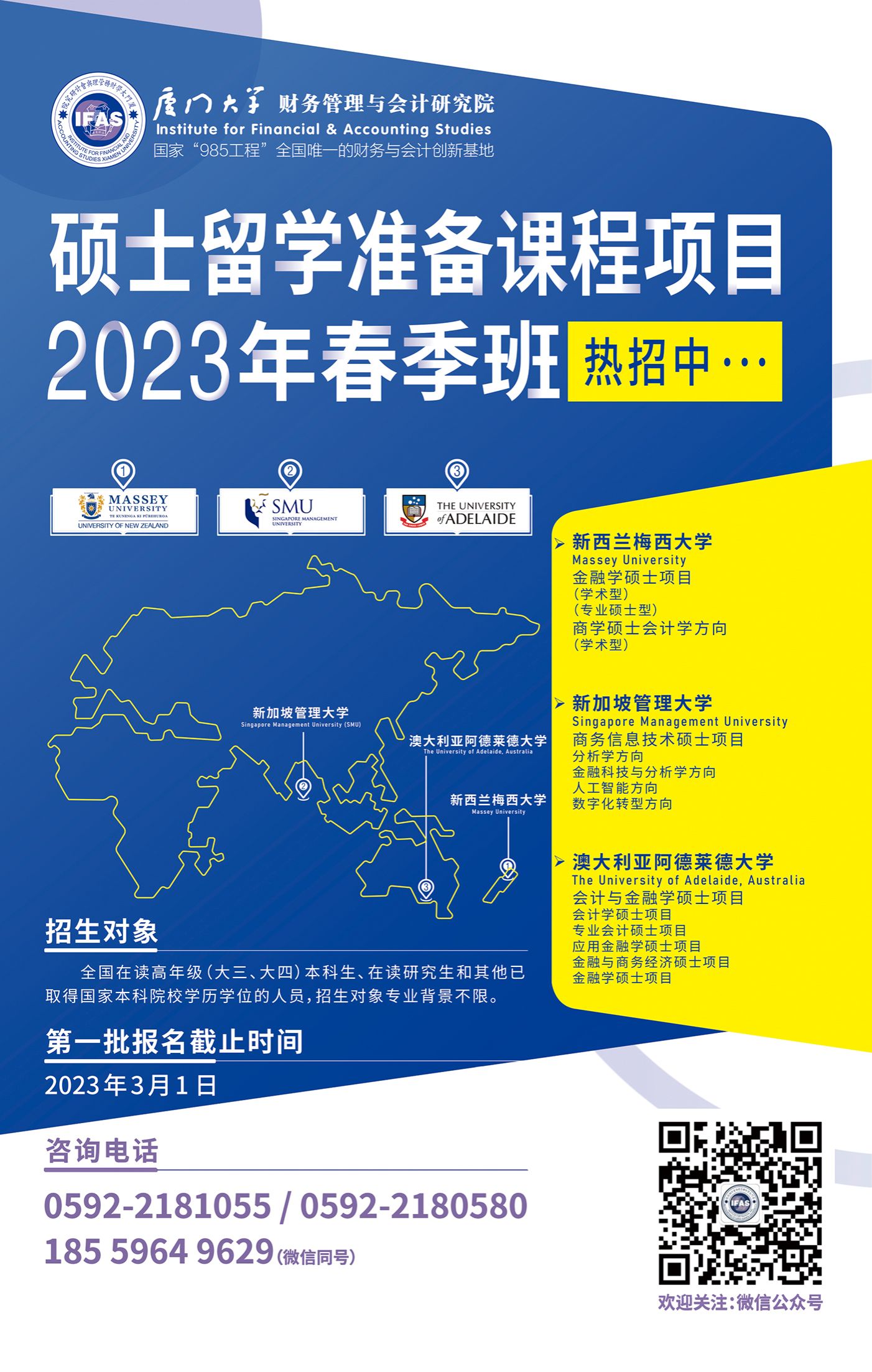 【2023年春季班招生】厦门大学财会院硕士留学准备课程项目