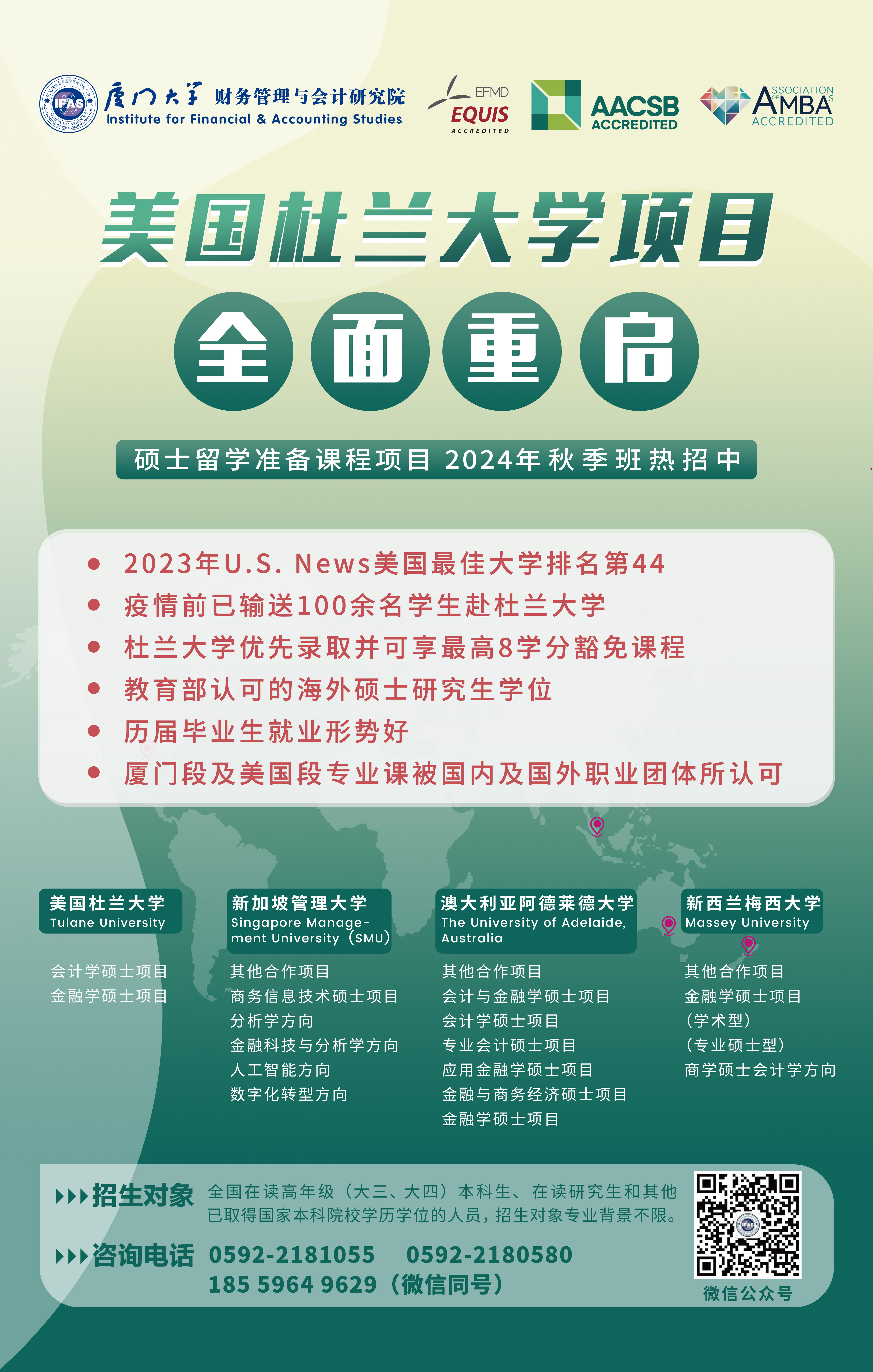 【2024年秋季班】厦大财会院硕士留学准备课程项目热招中